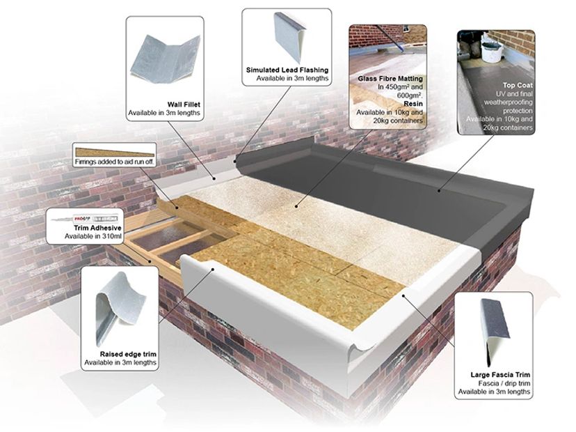 ProGRP is a new advanced liquid applied GRP – Glass Reinforced Polyester- flat roof system. It has been specifically engineered for flat roof applications in the UK market. It is a fully integrated seamless system where all the components are designed to work together to ensure that you can take full advantage of this rapidly expanding market.ProGRP can be used on virtually all types of flat roofs up to and including vertical surfaces for example the cheeks of a dormer or the inside face of a mansard or parapet roof.